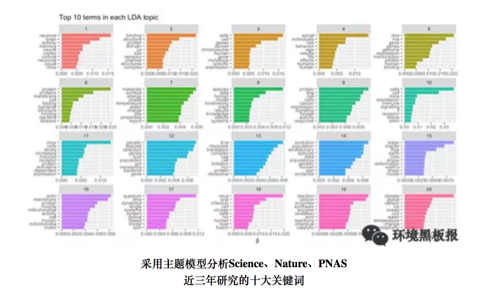 除此之外,还有一个方法是各种文献信息学指标,例如H指数,被引率等等,但这些指标属于后验指标,你得至少等文章发表过去两三年才能开始评价,但这两三年中也会有一大把新趋势出现。另外一个方法就是自己当期刊编辑或审稿人,其实这个是很多教授的独门秘笈,因为你会比其他人早好几个月知道新研究的动向,但研究生拿到的审稿机会本来就少,高水平期刊更是不会找研究生审稿。所以其实对于很多研究生而言,想了解前沿跟他人的研究动向几乎不可能,而根据我的观察,如果同行坐到一起聊天你对新动向一无所知,那么对方也就不会在你身上浪费时间了。有些出版方跟研究机构也会发布一些热点文章,但多数基于编辑经验,并不一定准确。一个相对靠谱的方法是借鉴搜索引擎排序的思路,通过文本分析的角度从统计模型上探索趋势,这里并不是说那种通过词云这类描述性统计量,而是基于主题模型、时序分析等手段的探索分析,但手段其实是次要的,是服务你的问题的,如果问题没搞清楚,用什么都是错的。