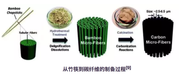 此种碳材料由于较高的石墨化程度,其电子传递能力较强。又由于生物质中还有大量的N,P,S等杂原子,使得由其制备的碳材料导电性进一步增强。因此此种材料在电化学上也具有广阔的应用前景。例如碳材料因为比表面积大、稳定性好、导电性好、价格便宜、来源丰富而成为超级电容器电极材料的首选。我们日常生活中的新能源汽车、数码相机,甚至楼道应急灯都有超级电容器的身影。例如大连理工大学邱介山教授课题组将虾皮制备成氮掺杂碳材料用作超级电容器,其在电流密度为50 mA/g时,比电容可达357 F/g8。利用西瓜皮、麦秸、绿茶、柚子皮、稻壳等制成的碳材料也可作为性能优异的负极材料用于锂离子电池。例如新加坡南洋理工大学于霆教授将竹筷碳化成碳纤维用于锂离子电池,其首次放电和充电质量比容量值分别为500mAh/g和283 mAh/g,且循环稳定性较好,有望替代传统石墨电极在锂电池中的作用9。